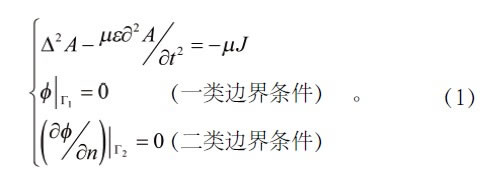 式中,Δ為拉普拉斯算子;A為矢量磁勢;μ為介質(zhì)磁導(dǎo)率;ε為介電常數(shù);J為電流密度;t為時間變量;φ為磁通量;n為法向量;Γ1為一類邊界;Γ2為二類邊界。