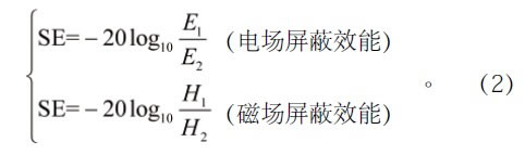 某個屏蔽體的屏蔽效能定義為入射到屏蔽層的電(磁)場幅度與穿透屏蔽層傳輸?shù)碾姡ù牛﹫龇戎?,單位為dB,表達式如下。