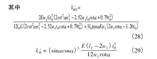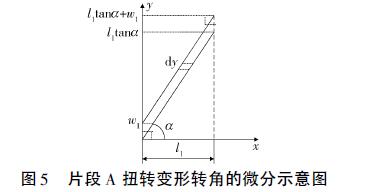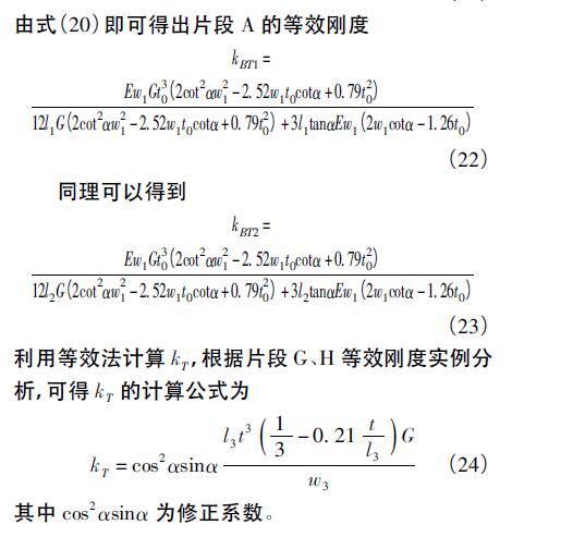 (2)當(dāng)w1<y<l1tanα時(shí),Δx長(zhǎng)度不小于鉸鏈厚度t0,則鉸鏈扭轉(zhuǎn)等效剛度為