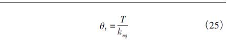 根據(jù)表1和表2中參數(shù)由式(1)、(22)~(24)計(jì)算可得,鈹青銅材料的Deform-X柔性鉸鏈實(shí)例的等效剛度為keq=532.27N·mm/rad,聚丙烯材料的Deform-X柔性鉸鏈實(shí)例的等效剛度為keq=5.5N·mm/rad。Deform-X柔性鉸鏈?zhǔn)艿饺鐖D1所示的轉(zhuǎn)矩T時(shí),根據(jù)理論推導(dǎo)的等效剛度可以計(jì)算得到其彎曲變形轉(zhuǎn)角θt,計(jì)算公式為