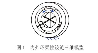 內(nèi)外環(huán)柔性鉸鏈(Inner and outer ring flexural pivots, IORFP)在剛度、精度和溫漂等方面特性優(yōu) 良,三維模型如圖4。以純扭矩作用下的內(nèi)外環(huán)柔性鉸鏈為正剛度子系統(tǒng),通過研究相匹配的負(fù)剛度 模塊,給出零剛度柔性鉸鏈的構(gòu)造方法,最終,完成零剛度柔性鉸鏈的設(shè)計(jì)、樣件加工和測試。