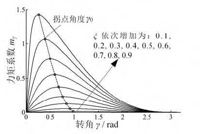 (2) γ∈[0, β]時,轉(zhuǎn)角γ 增大,mγ從零先增大, 至拐點(diǎn)角度γ0處取最大值mγmax,后又逐漸減小。