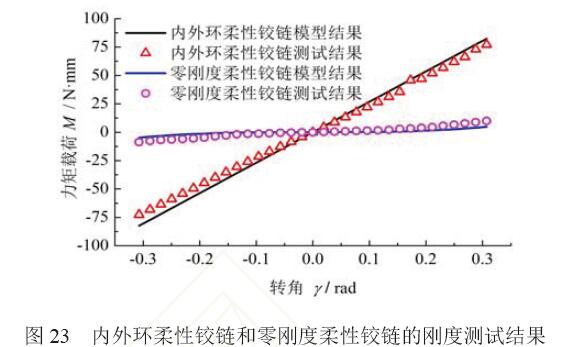 4.3 零剛度柔性鉸鏈的轉(zhuǎn)動剛度測試平臺 參照文獻(xiàn)[8]的轉(zhuǎn)動剛度測試方法,搭建零剛度 柔性鉸鏈的轉(zhuǎn)動剛度測試平臺,如圖22 所示。
