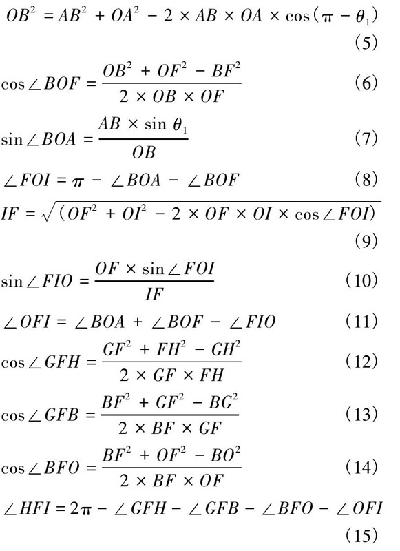 如圖6所示, 在直角坐標系中, 以封閉的矢量多邊形ABFO為例, 建立位置方程[12]。