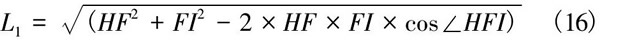 在三角形△FIH中, 彈簧L1的長度變化即HI的位移變化, 計算出彈簧L1=HI的長度為: