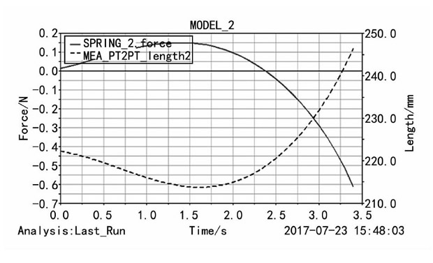 如圖15所示, 在關閉雜物盒過程中, 彈簧L2的作用力MEA_PT2PT_force2慢慢變大, 在通過最大值后, 作用力逐漸減小直至為0, 然后又反向迅速增大直至關閉狀態(tài)。