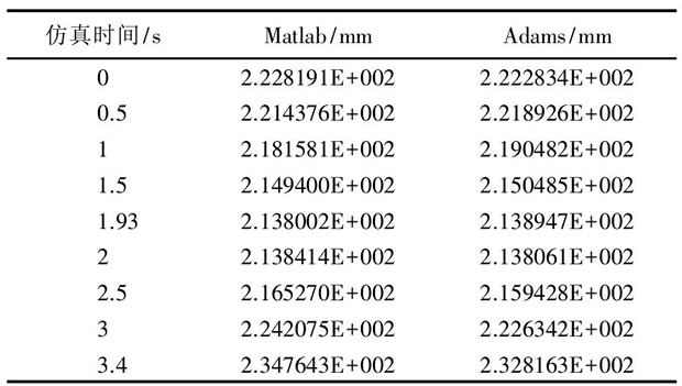 結果表明, Matlab解析法和Adams仿真法得到的分析結果相差不大, 最大相對誤差不超過0.84%, 兩種方法具有很好的一致性。