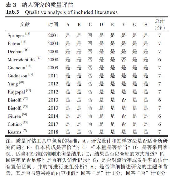 由2名研究者依據Loney等提出的疾病患病率或發(fā)生率研究質量評價準則進行質量評價,結果見表3。文獻質量均屬于高質量研究。